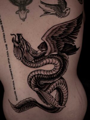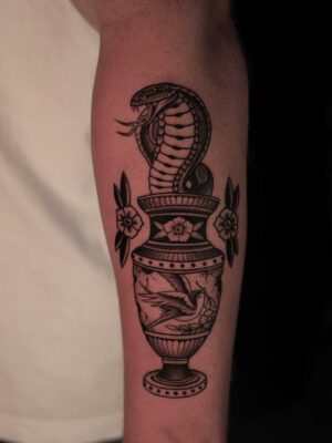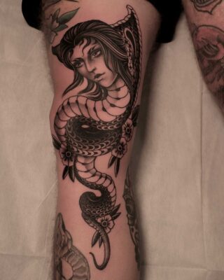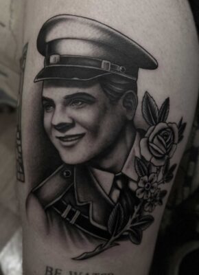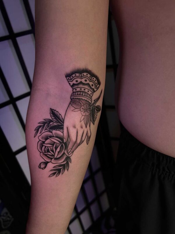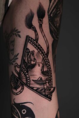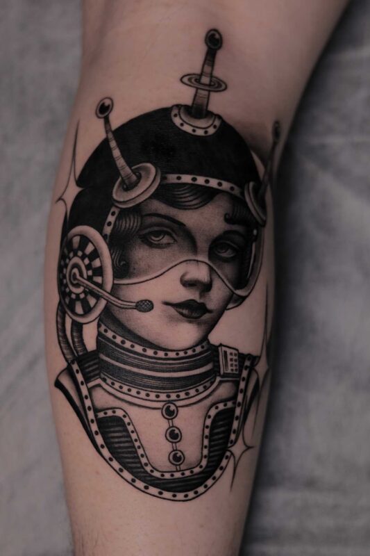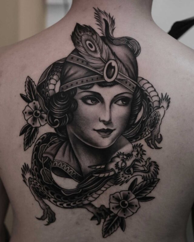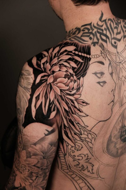 Simple – Charming – Bold: are words to describe Micky’s style. Spending a lot of time studying traditional art, Micky is most prominent with his Pin-up portraits that use strong black shapes and minimalist lines but effectively express the character’s emotions. For Micky, the durability of the tattoo, whether 5-10 years or more, is a top priority.